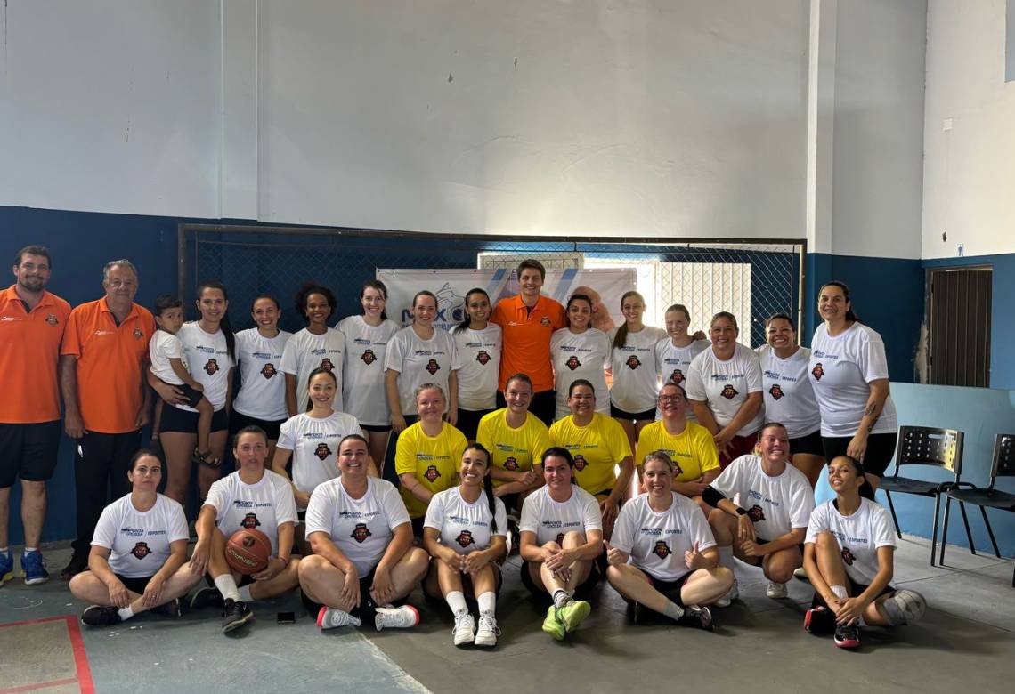 Tivemos a presença da ex jogadora e hoje grande incentivadora do basquetebol Nadia Colhado conversando e sendo tietada pelas atletas do evento.